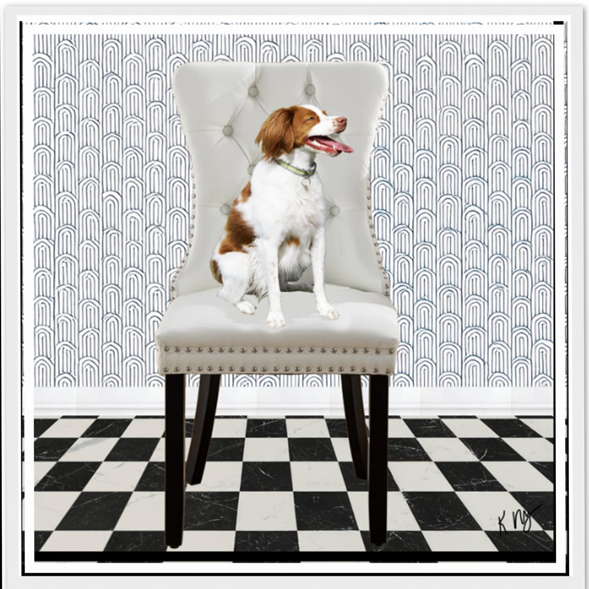 Turn your pet into a timeless work of art with this Retro & Whimsical Custom Pet Portrait featuring a stylish Art Deco-inspired chair, black-and-white checkered floor, and patterned wall backdrop. This chic design captures the playful elegance of your furry friend while letting you personalize the portrait with 1, 2, or 3 pets. Printed with vivid detail on premium-quality materials, this piece makes a unique gift for pet lovers or a standout addition to any retro-inspired home décor.